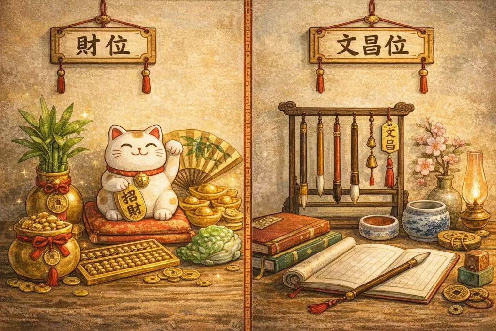 有凶方當然也會有吉方,農民曆上的「年運吉方」一般是透過紫白飛星推算而來,用來表示年度時空能量的吉凶。常見如:財位、文昌位、桃花位等,分別可以對應不同的生活領域,這些方位因為有著象徵財運、學業跟人際的星曜飛臨,因此具有不同的影響力,如果放對了就像是順著風向揚帆,讓原本就具備的努力與條件,有更高機率被放大成好結果。接下來的內容,會繼續跟大家進一步的介紹凶位跟吉方,還要怎麼做可以減少凶方的危害。